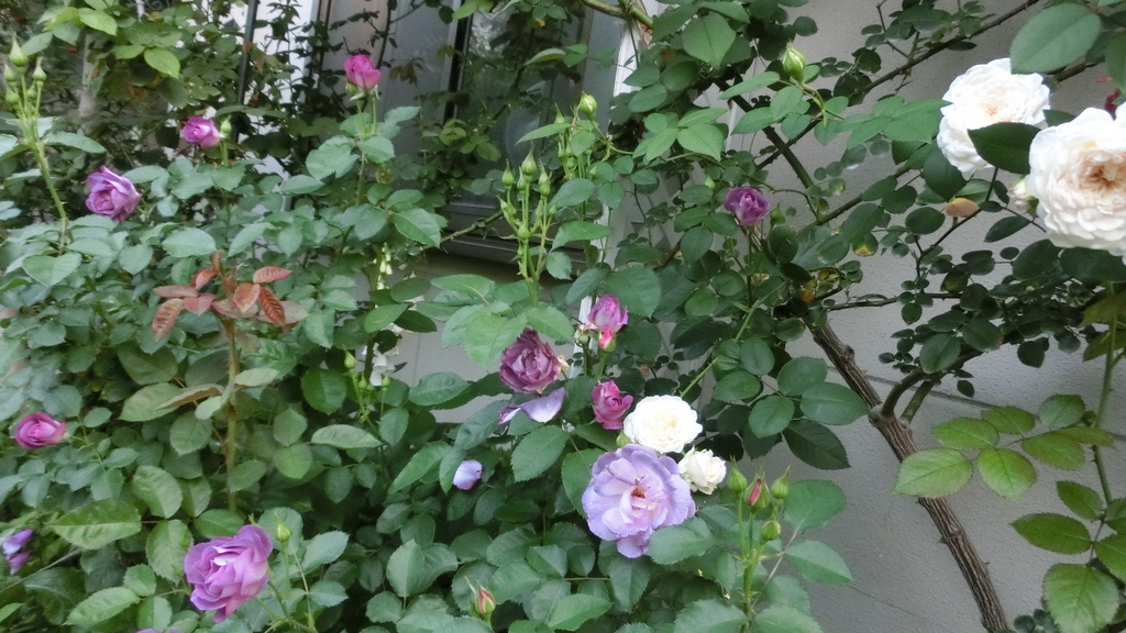 ブルーフォーユ―のそばでは 白のソンブレイユが咲いてます