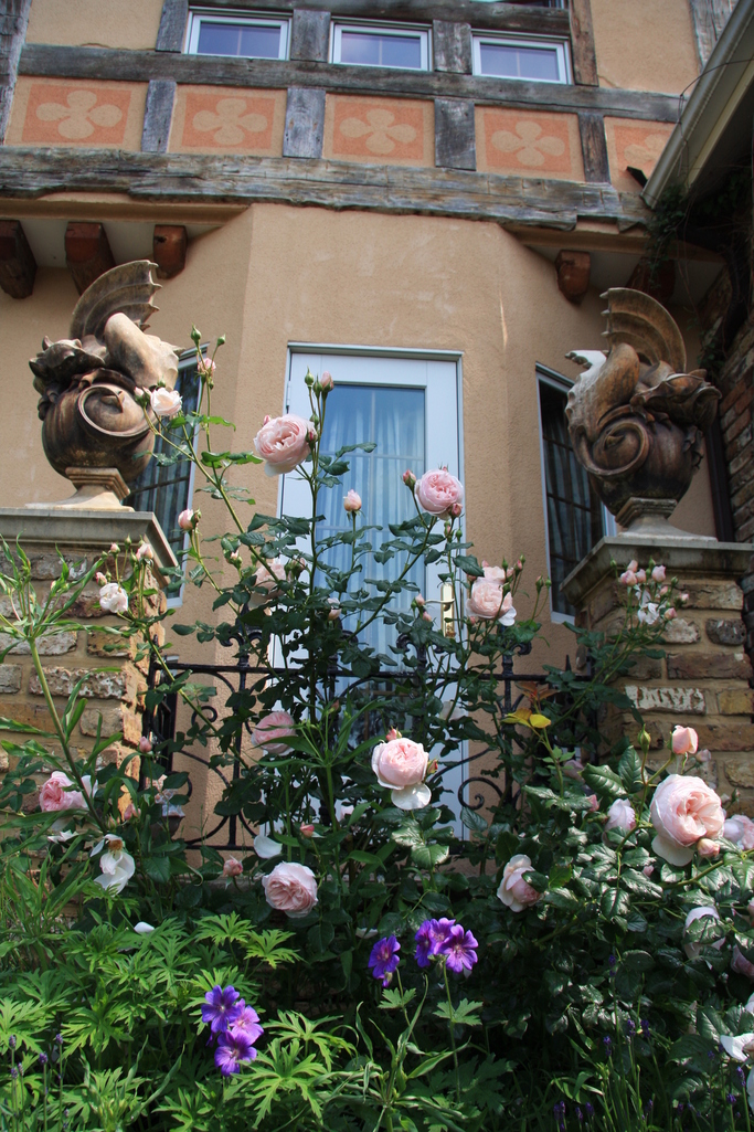 薔薇の下草はフウロ草ですか?随分花が大きくてきれいな紫ですね。薔薇の淡いピンクにぴったりです。T&Kさんちはお家もとてもご立派で素敵ですね。ため息ものです~♡
