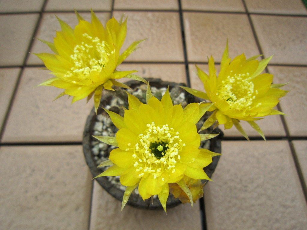花よりもちいさいサボテンなのに3つも花をつけて頑張ってます。