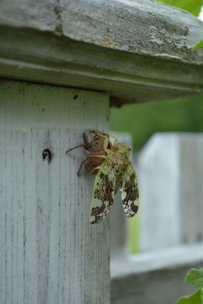 薔薇の囲いでひっそりと羽化していました。