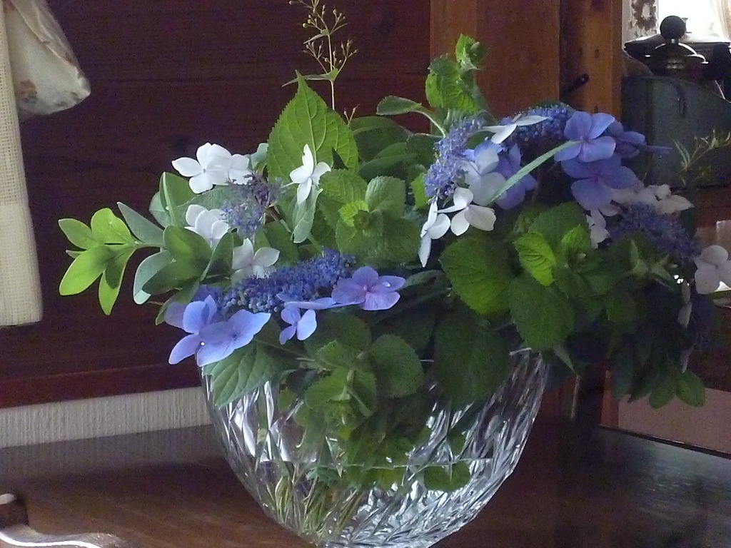 ミントとバブテシアにブルーのアジサイで、涼やかに。