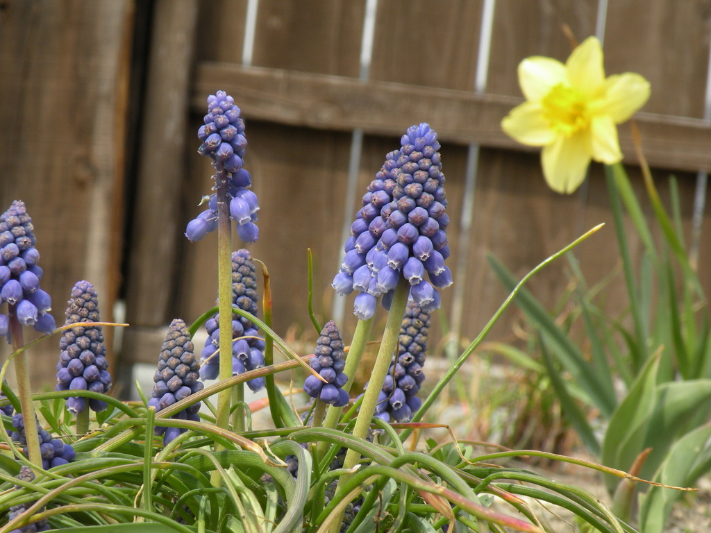 ムスカリのパープルにスイセンのイエローがとても可愛らしく合いますね(^o^)ジョンちゃんは元気ですか(^o^)