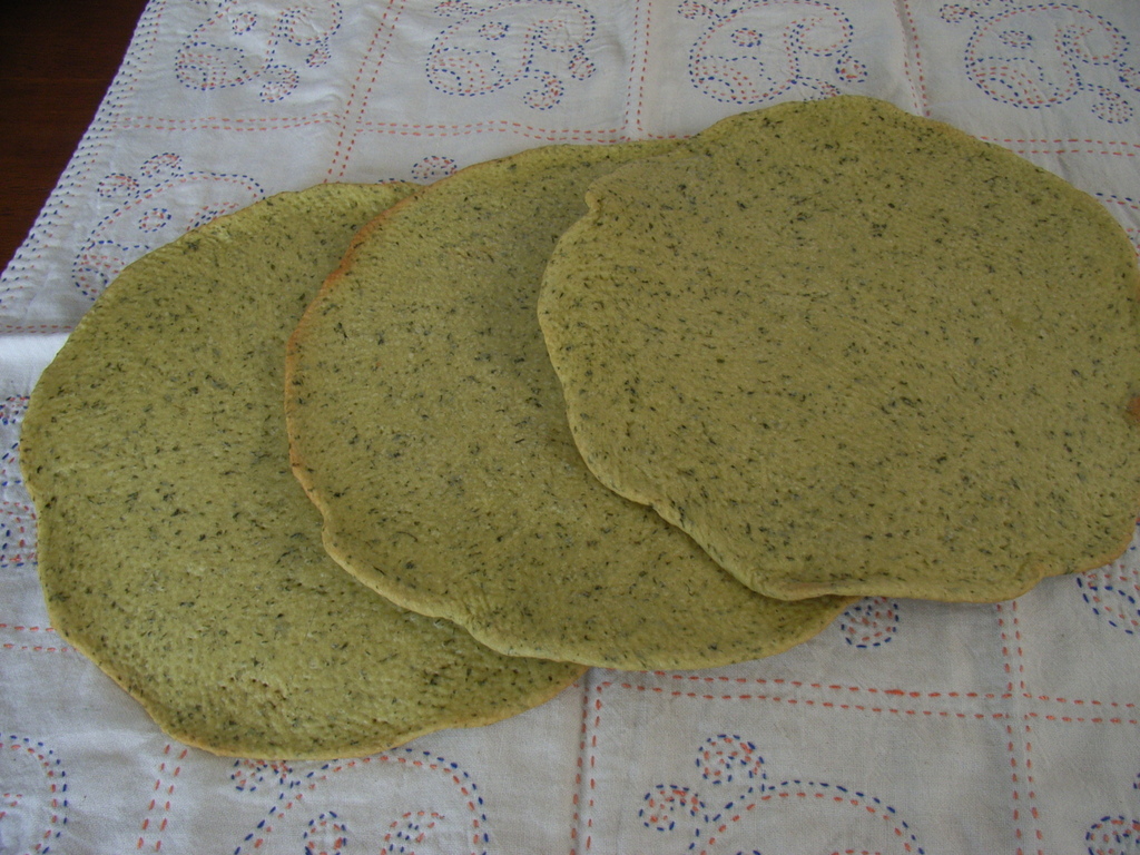 カナダ旅行の味を再現してみましたが、冷めたらぱりぱりに。これでは巻くことができません。まるでバジルせんべいになってしまいました。
