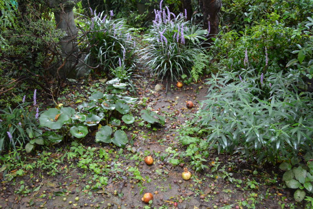 9月は長雨で姫リンゴ・ザクロの実が落ちました。