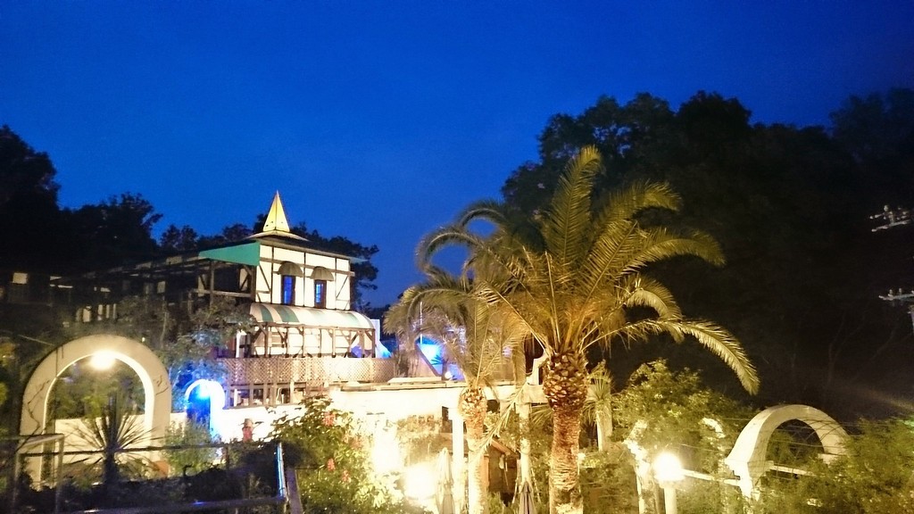 夜のローズガーデンとお城