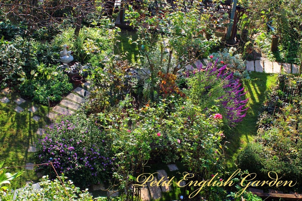 上から見下ろした秋の花壇、素敵ですね(^^♪ ところどころに入った紫と銅葉が秋の庭を彩って華やか♡ これから紅葉してくるのも楽しみですね!