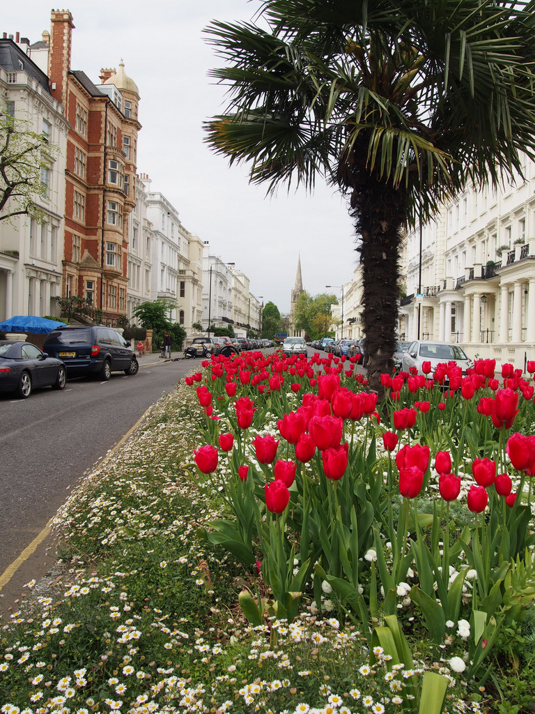 5月から9月末までの ロンドン生活で出会ったお花達です。 もうチューリップは終わっていると思っていたのですが 満開の時に間に合いました。 ロンドンの住まいのすぐ近くの道路の 植栽。チューリップのお花が終わると すぐに次のお花を。手入れが行き届いています。