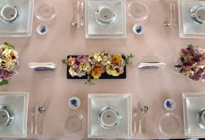 便利なパンジーです。 庭の景観には勿論。 切り花として部屋を飾る。 更にテーブルは勿論、皿の上、料理にも大活躍します。 勿論、無農薬。 マンションでは中々使用できない農薬。 手摘み? 害虫の(笑)