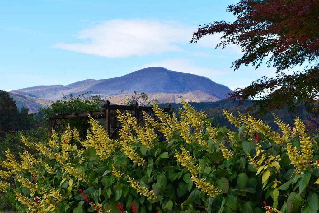 今季最後に訪れたボタニカルガーデン。 秋晴れの一日で、泉ヶ岳がくっきり。