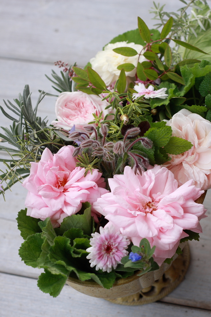 陽が傾いてきたのでたっぷり水を張った花器に移し替え、この後室内へ。