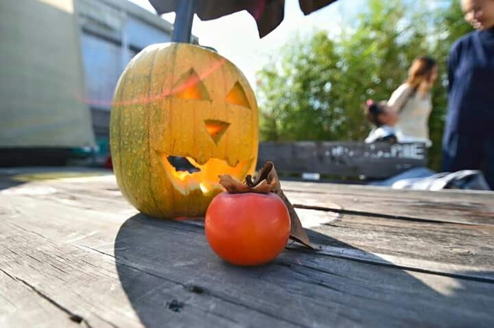 今年初めてのハロウィンかぼちゃのカットに挑戦しました。柿くんが、どうしてそんな顔になったの?だって・・・