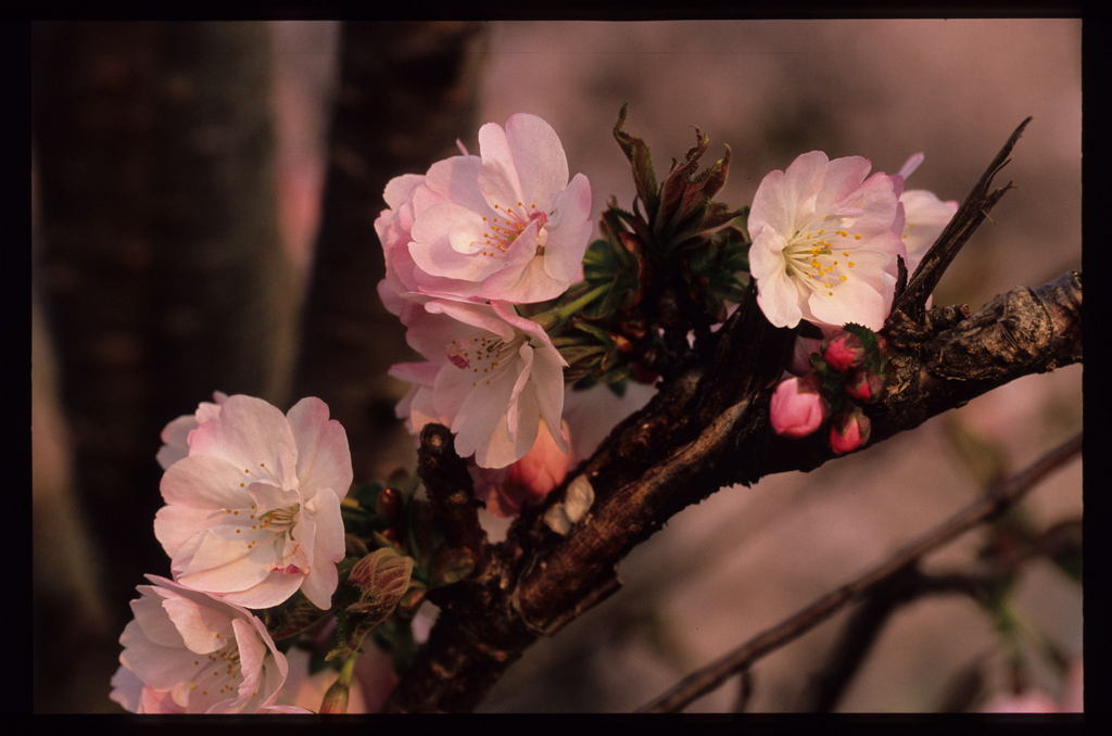 八重桜ですか?暖かいセピアがかった色合いがとても素敵な写真ですね。