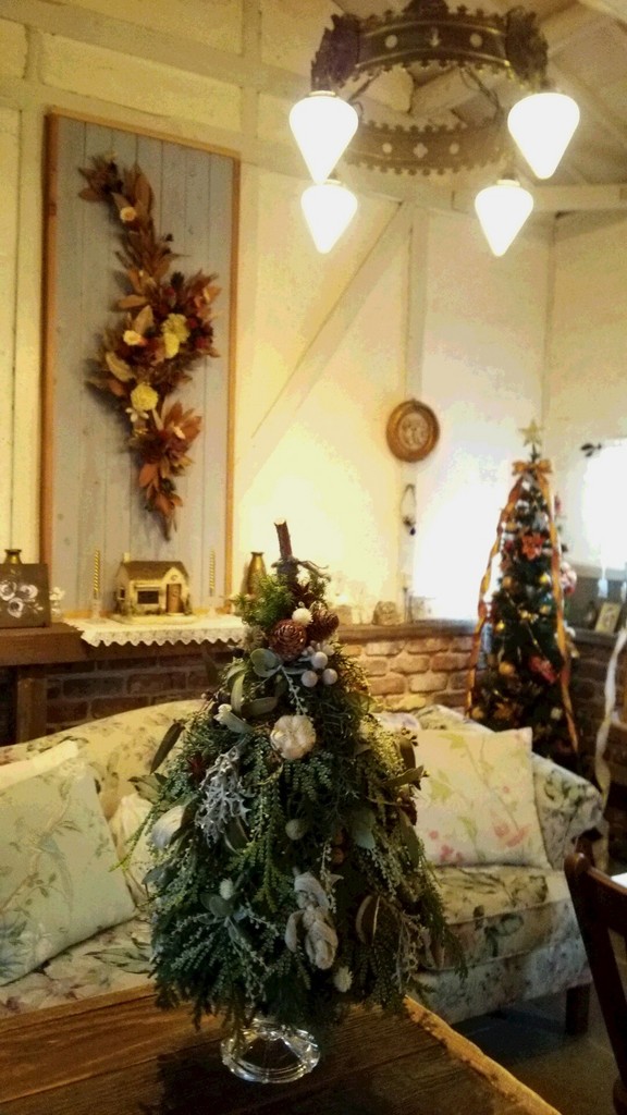 コテージの中もクリスマスに模様替えです♪ 手前のツリーはお気に入りのお花屋さんのレッスンに参加して自分で制作しました♪