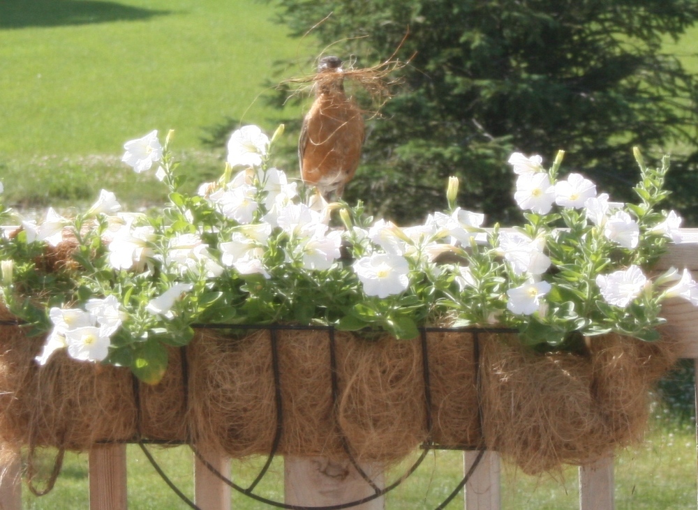 いいですねぁ~♪つぐみなら可愛くて大歓迎ですよ。やしマットでどこに新居を作ってるんでしょうね。そのうち子連れでお礼に来たりして?! うちのハンギングはときどきカラスに狙われてますよ~。