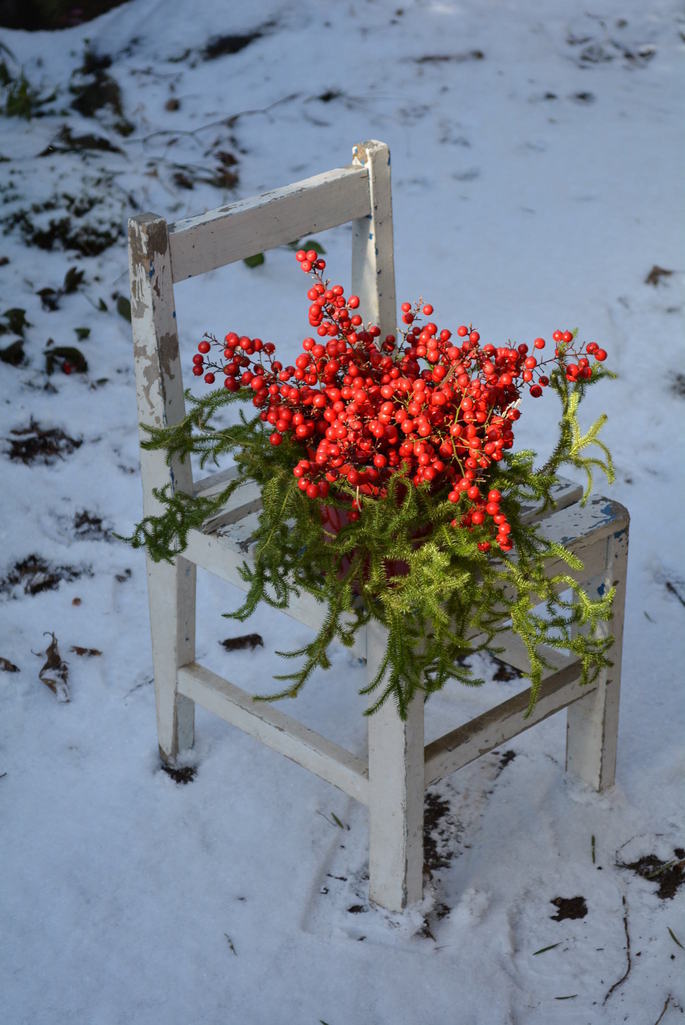 正月に飾ったナンテンの実を庭に置きました。鳥たちのために。