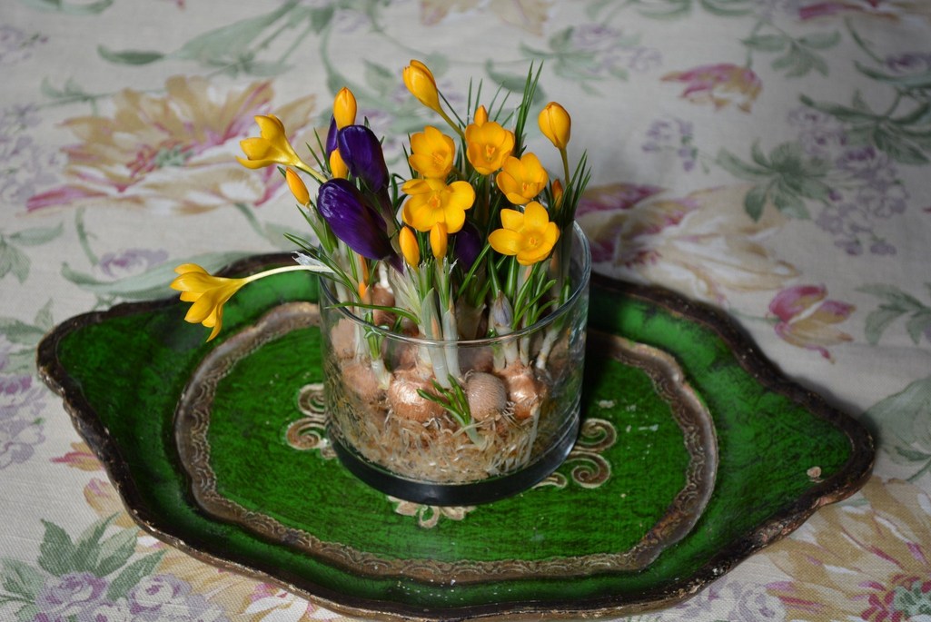 水栽培のクロッカスが咲きました。