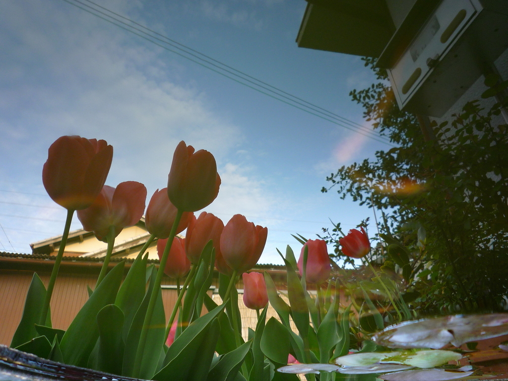 チューリップとメダカ