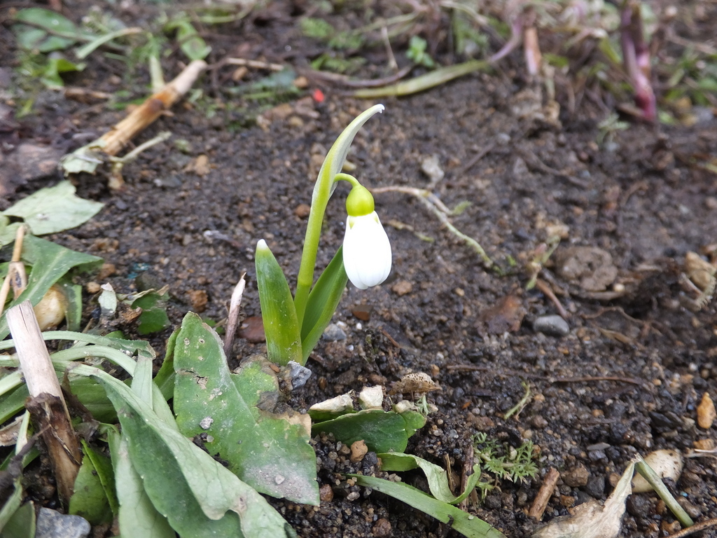 雪どけを待ってました~。 小さなスノードロップ