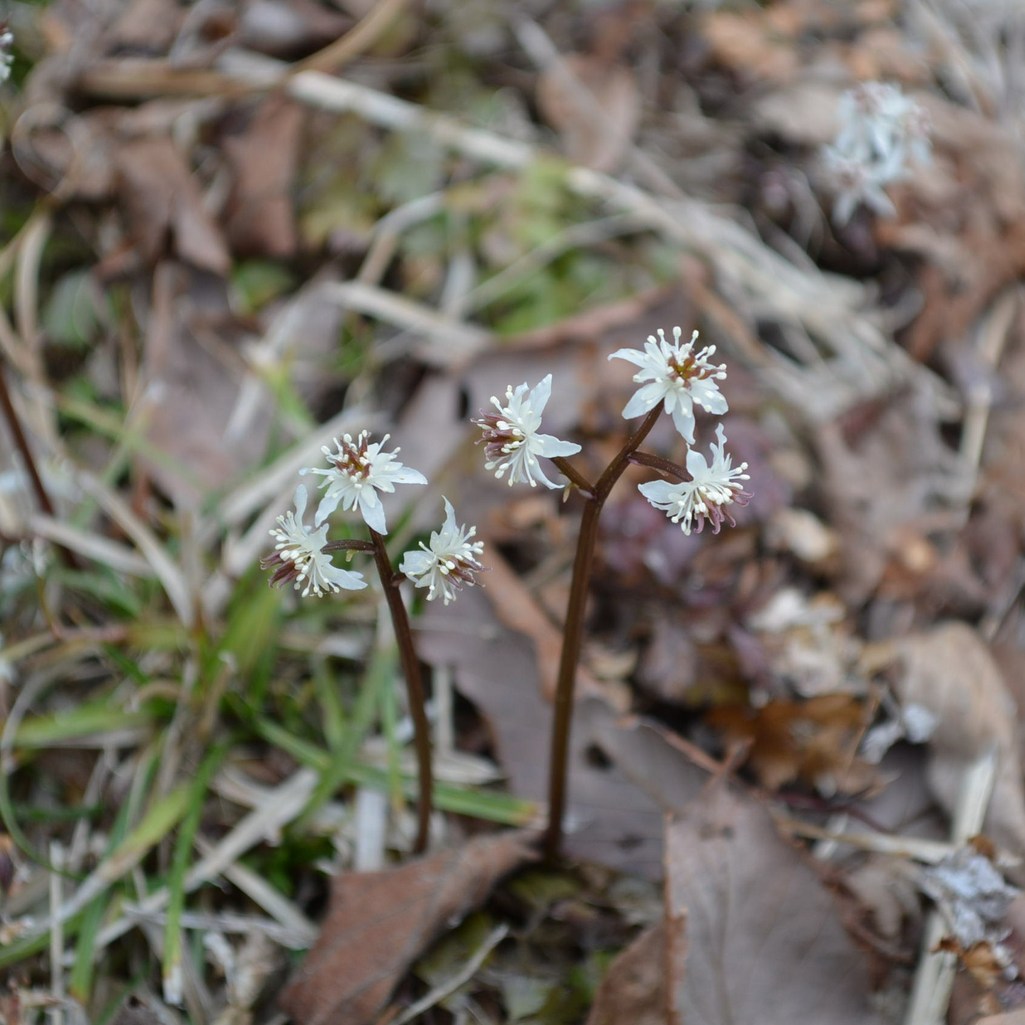 セリバオウレン、 落ち葉の間あちらこちらに白い花が。