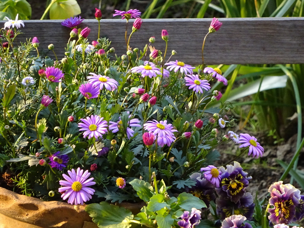 ブラキカム(3色混合のポット苗)が一斉に咲きだしました。カラフルで美しい~