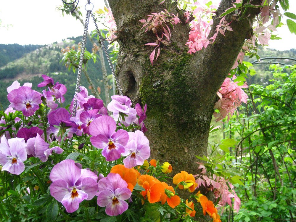 冬の間、ネグンドカエデの枝にビオラを吊って楽しんでいました。そのネグもようやく目を覚まし、ピンクの新芽が芽吹いてきました。