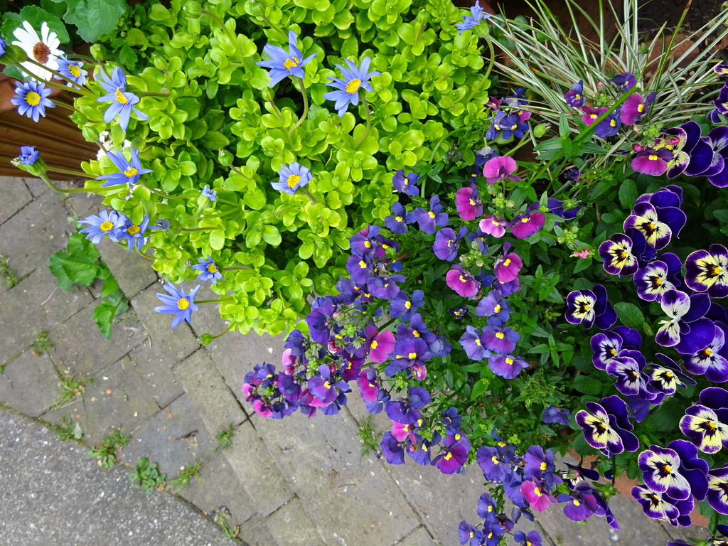 ブルーデージーハニーブルー、ネメシア、ビオラなど。