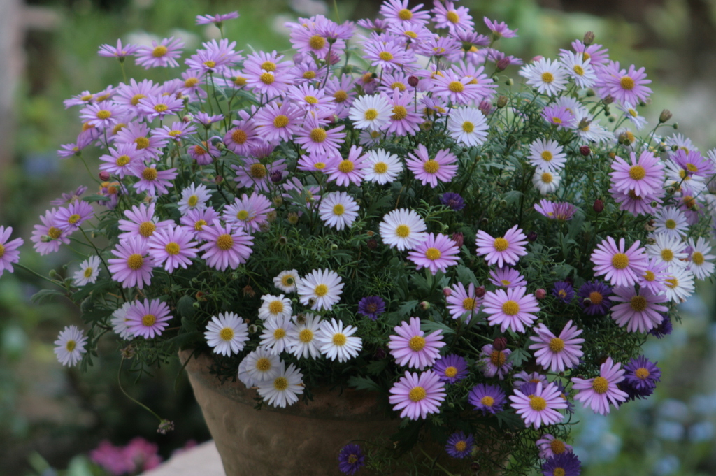 ブラキカム(姫小菊)が満開になりました。単色にない美しいグラデーションです。(3色混植のポット苗)