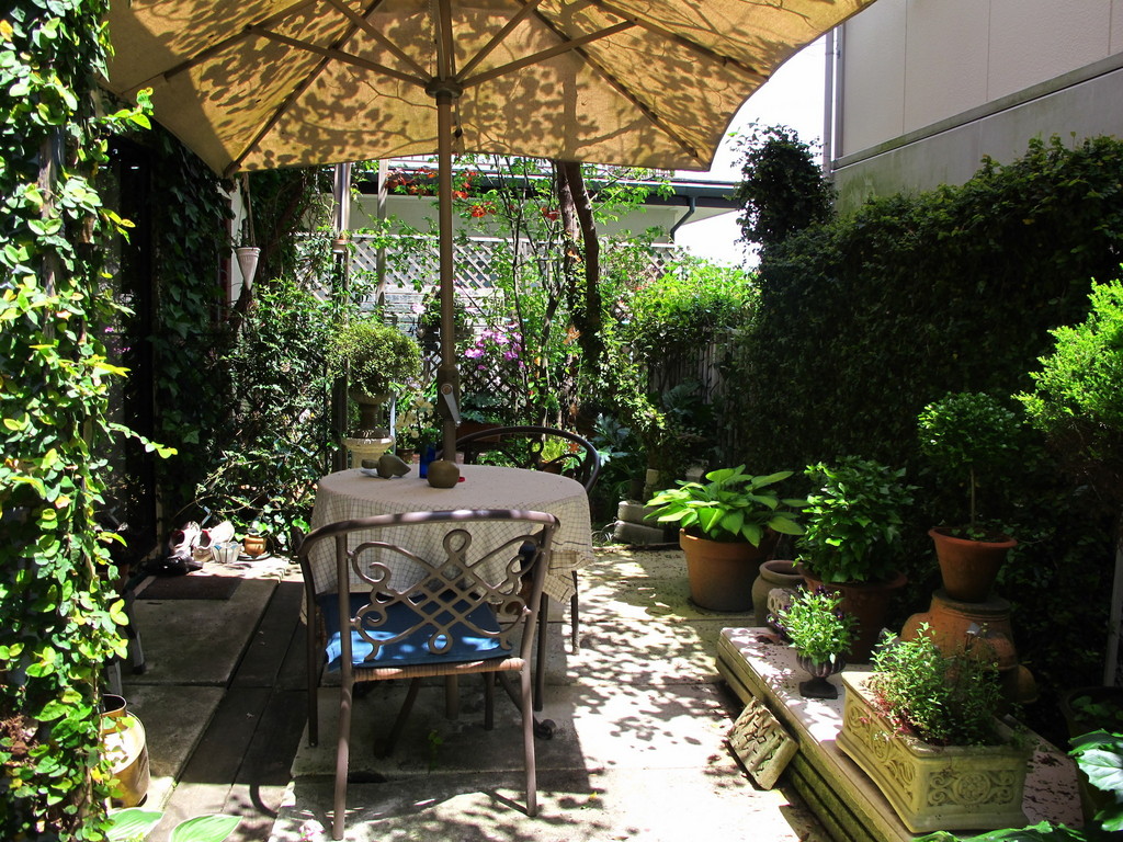この傘の木の陰が良い味出してます、個室感が有りカフェしながら読書なんか最高ですね?素敵な空間です。