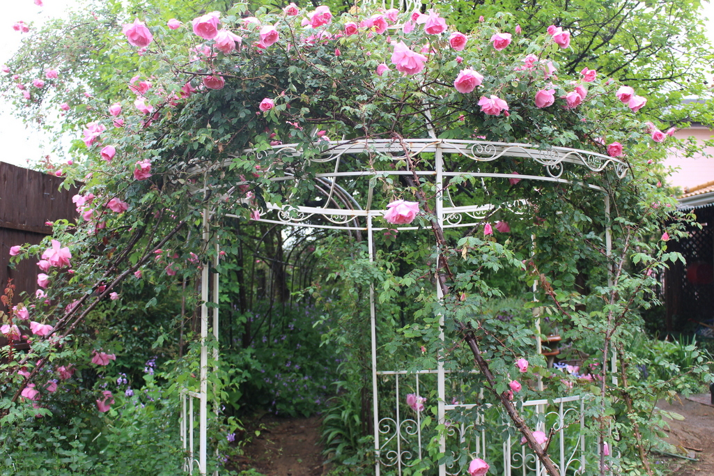 庭のあちらこちらで香るバラに 蜂より先に飛び回る庭番です。