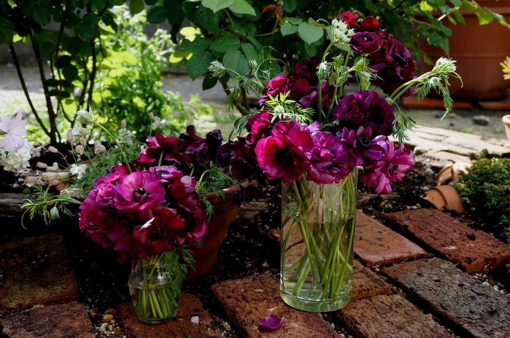ラナンキュラスももう満開になり、朝のうちにカットして部屋で飾ることにしました。