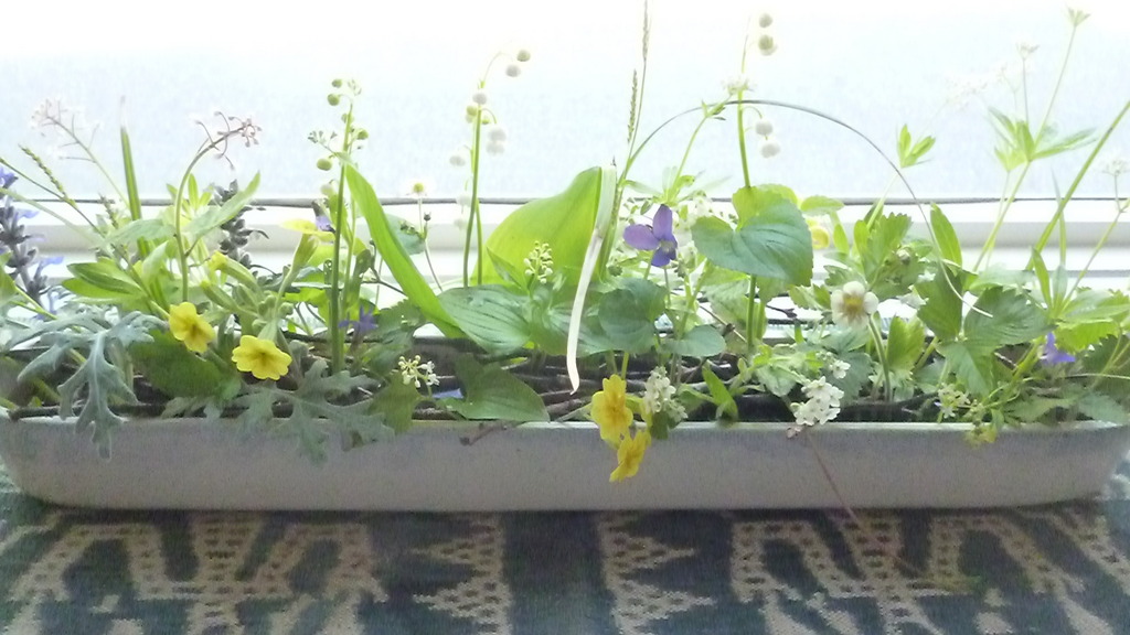 庭の花を使って、春のアレンジを。