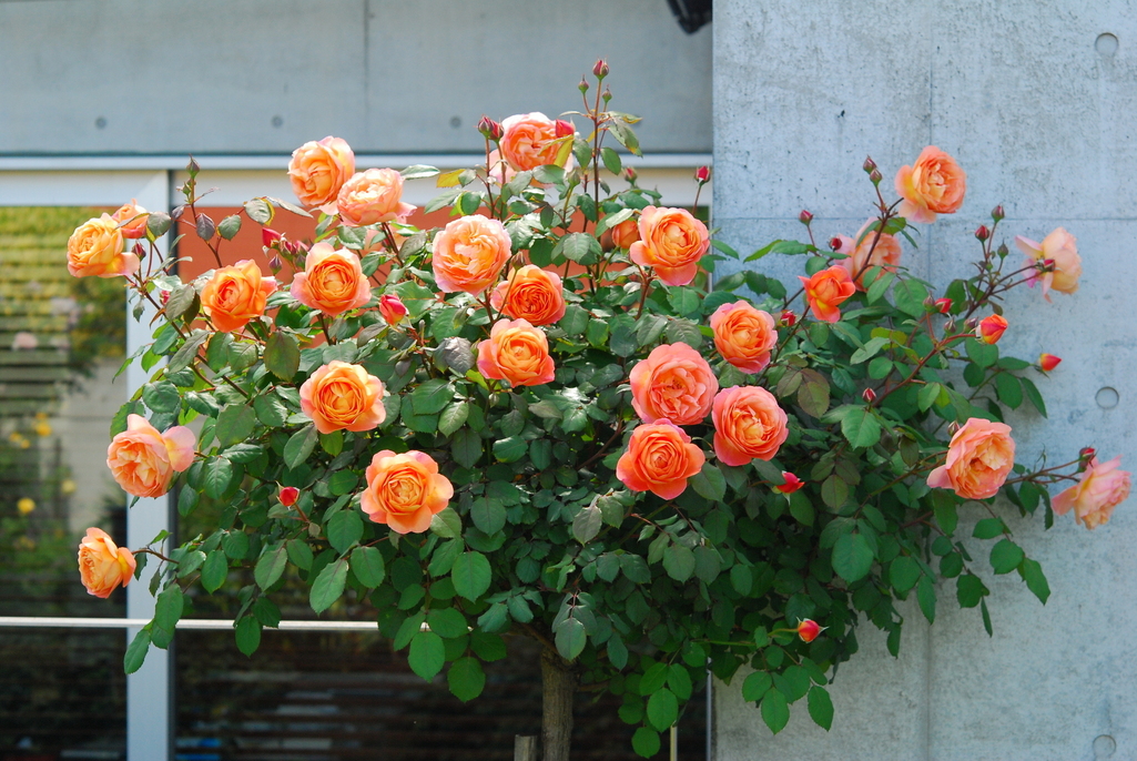 スタンダード仕立てのエマハミルトン いつもより早く満開です。