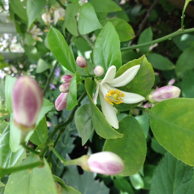 メイヤーレモンの花咲いてます。 去年の花はヤマブキ(みのひとつだになきぞ悲しき)