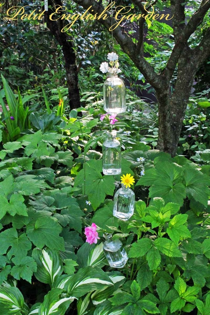 プラムの枝に下げた小さな花瓶、皆さんに好評でした