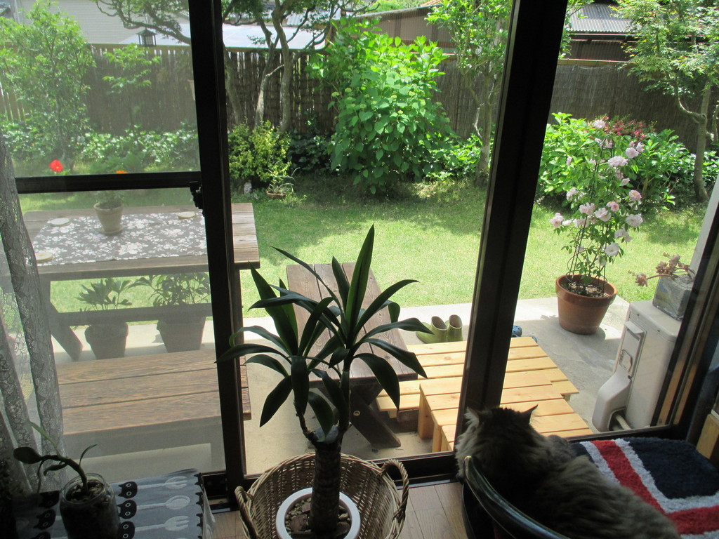 室内,庭,猫,つるバラ,