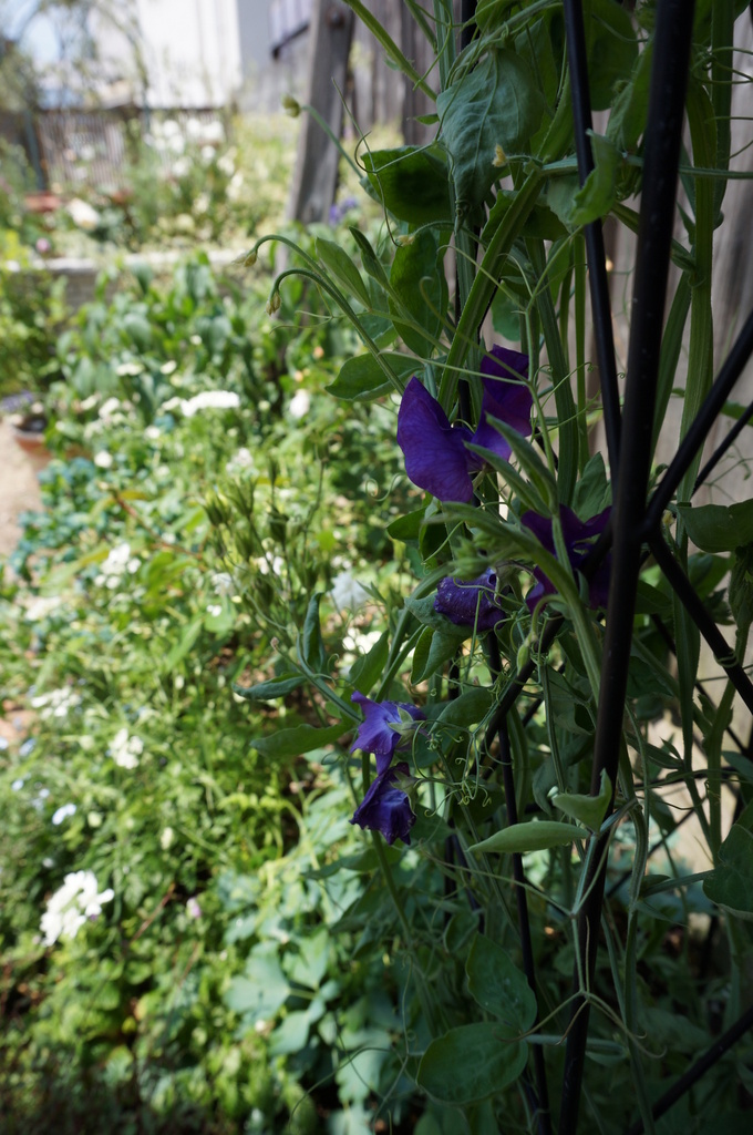 ブルーと白のスイトピー・タワーを造りました。もうすぐ白も咲き始めます。