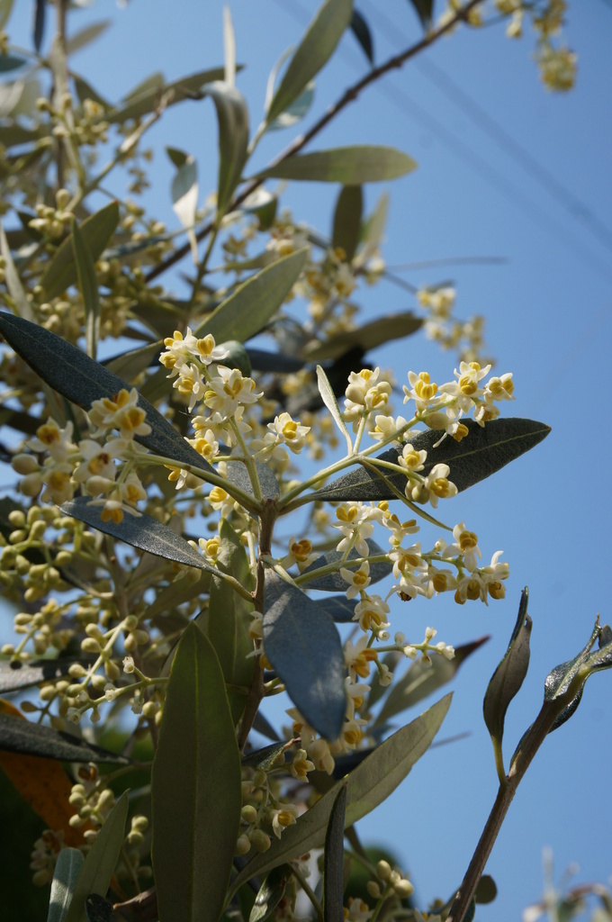 毎日快晴が続いています!青空にオリーブの花。ミッション種です。