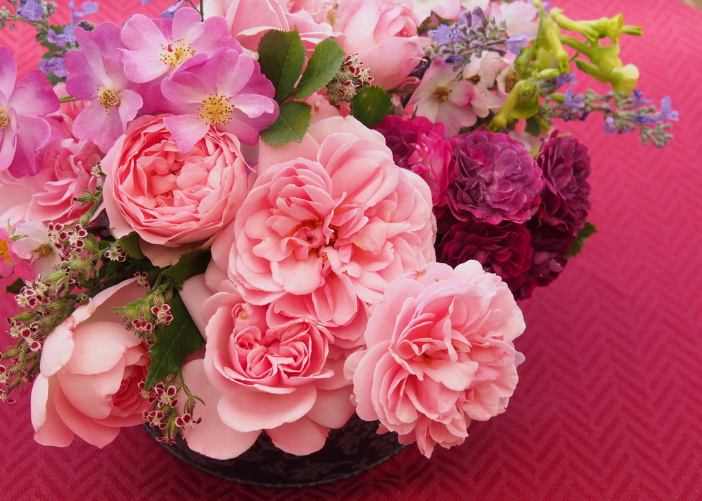 このバラが咲いたら満開の時期も最後。黄色のニコチアナがさし色です(^_-)-☆