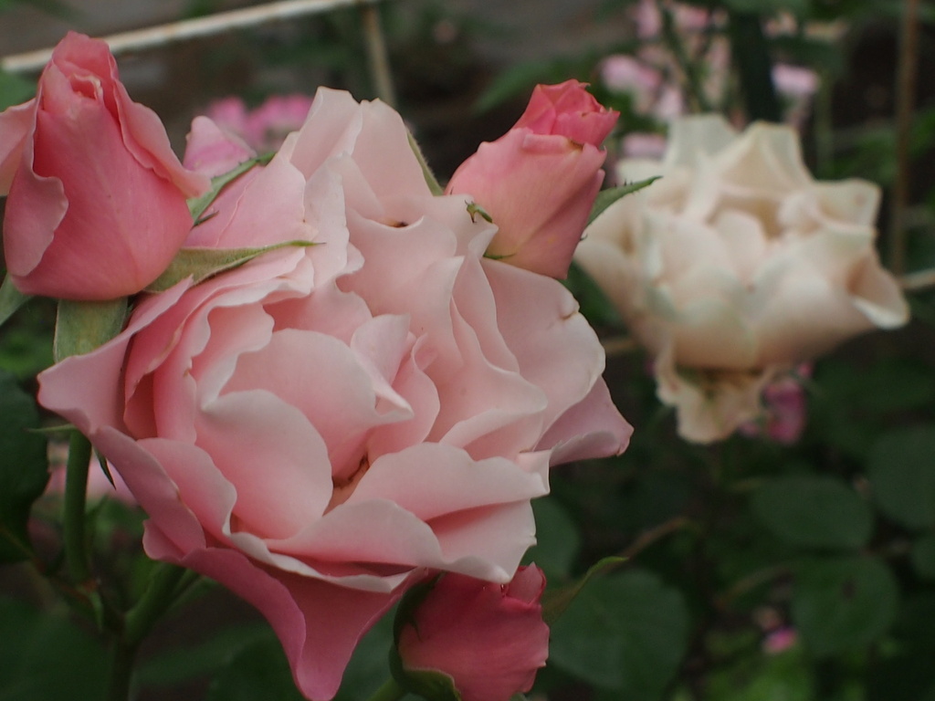 花持ちの本当にいいバラ ピンクからグリーンがかった白に変化していきます。