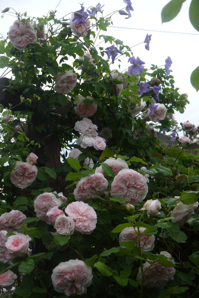 バラが終盤になると、クレマチスが上がって来ます。丁度良くコラボしてくれて嬉しいです~♪