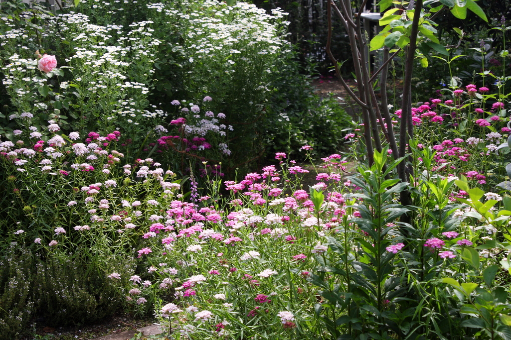 こぼれ種から育ったマトリカリアとキャンディタフト。