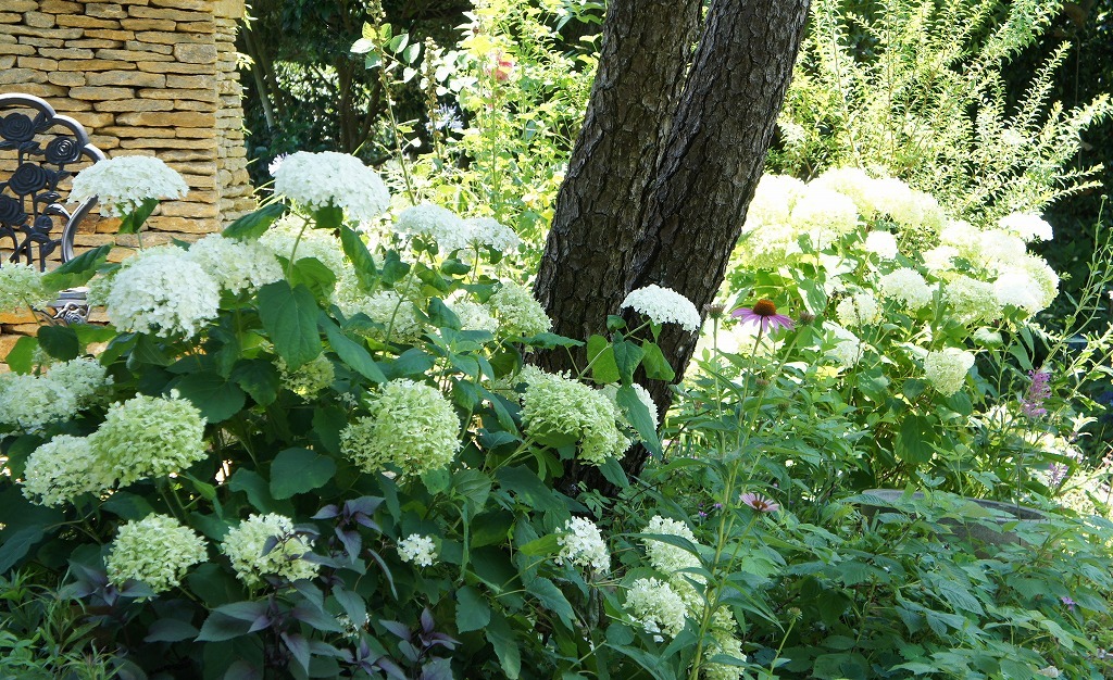 奥の細道沿いにあるアナベルが満開です