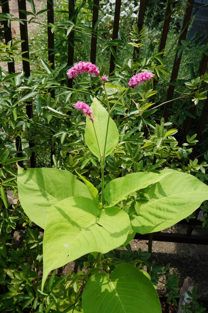 葉が大きくて、背は70~80㎝くらいに伸びました。 花は可愛らしいピンクです。