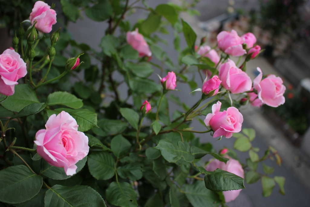 ピンクストリームは中輪の可愛い花をたくさん咲かせます。 病気にも強く、繰り返し咲いてくれるお気に入りのバラです。