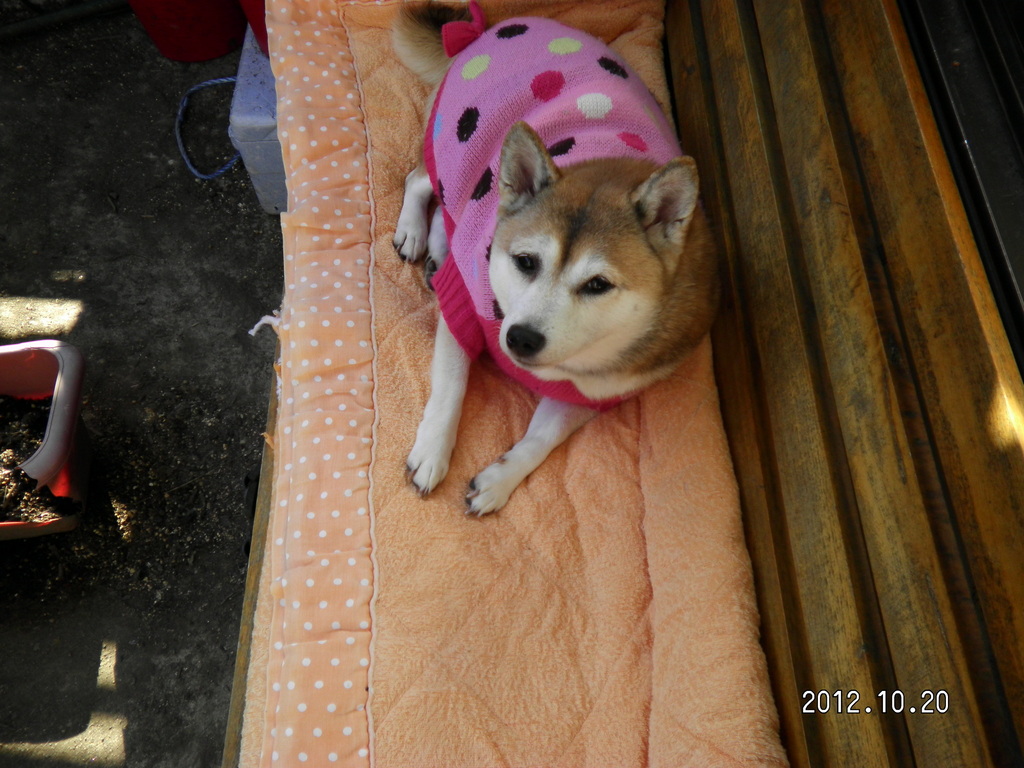 かわいい( *´艸`) お庭が見えるいい場所にお布団を敷いてもらって幸せですね(^_-)-☆