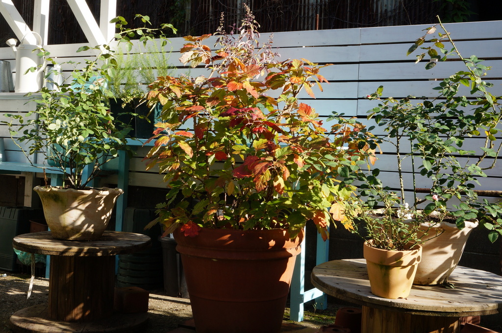 柏葉アジサイの葉が色づき始めました。