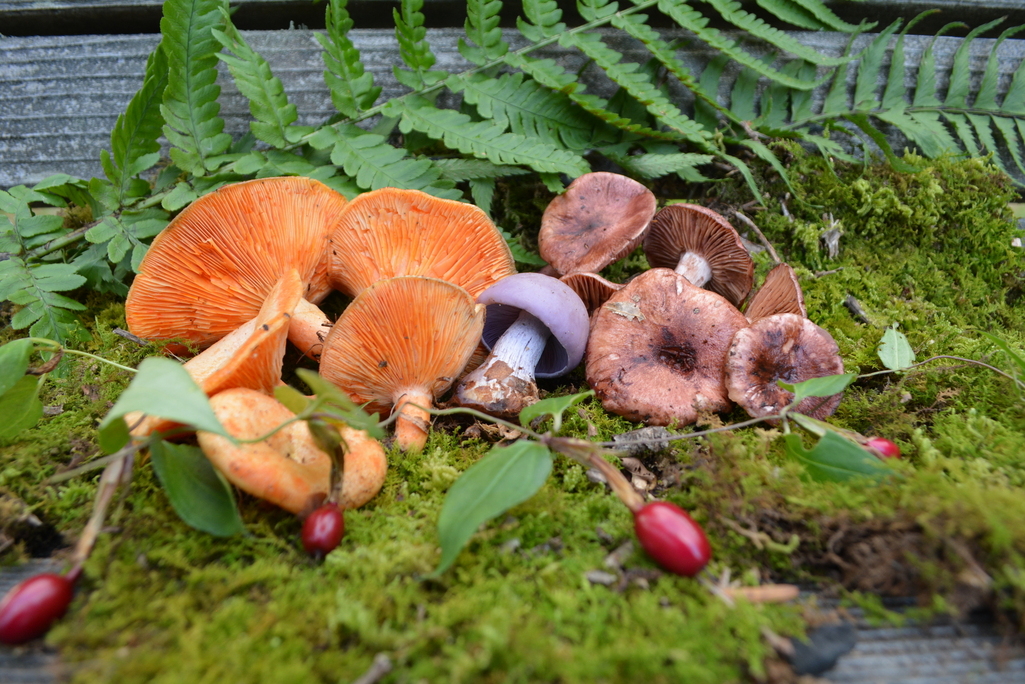 アカモミタケ・ムラサキシメジ・ヒメサクラシメジどれも色がきれい。
