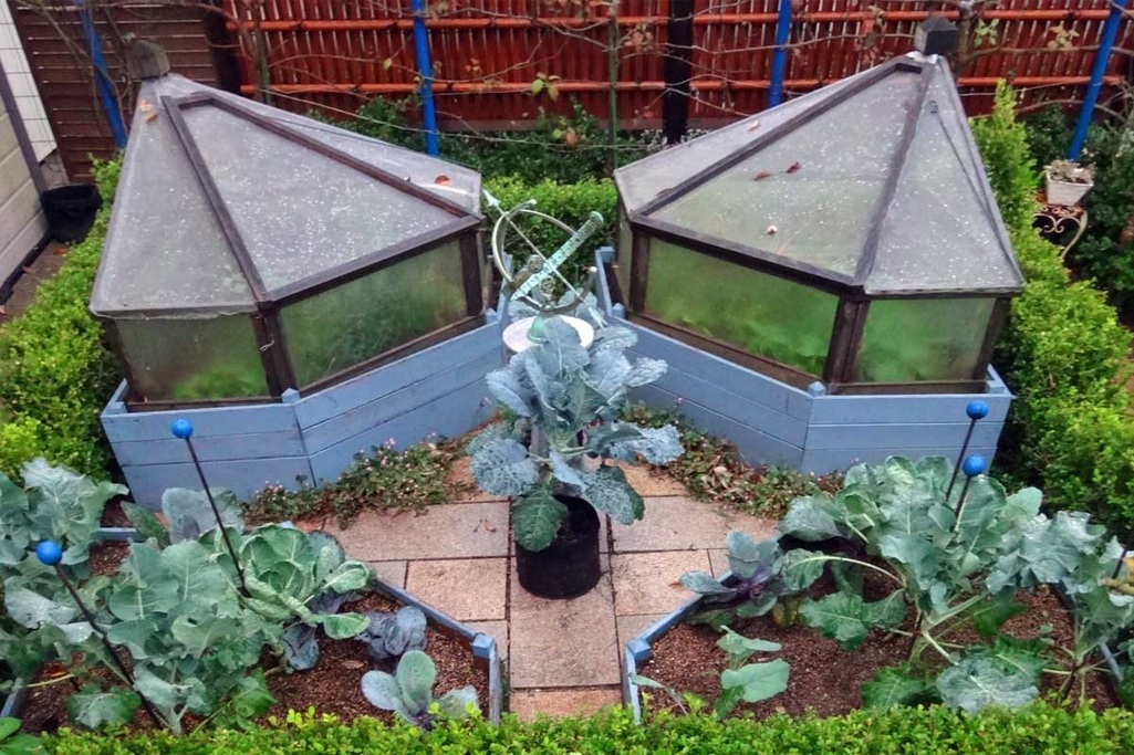 野菜が大きくなってじゃまになってきたネットフレームをはずします。もうしばらくイモムシたちには要注意・・