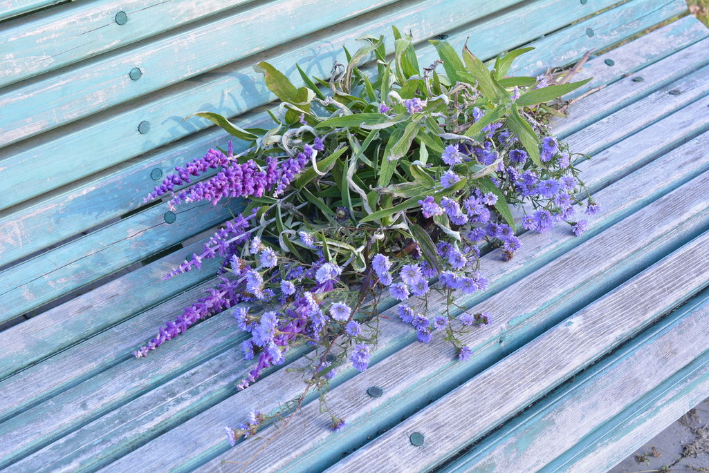 数日前の雪でアメジストセージはほとんど枯れていました。残ったアメジストセージと宿根アスターを切って頂きました。来年春まで閉園。