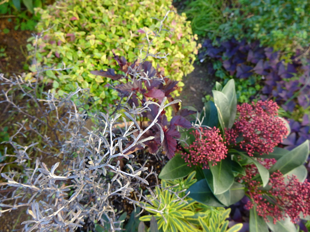私も同じ色のスキミアで寄せ植えしました。色合いも似ています❤